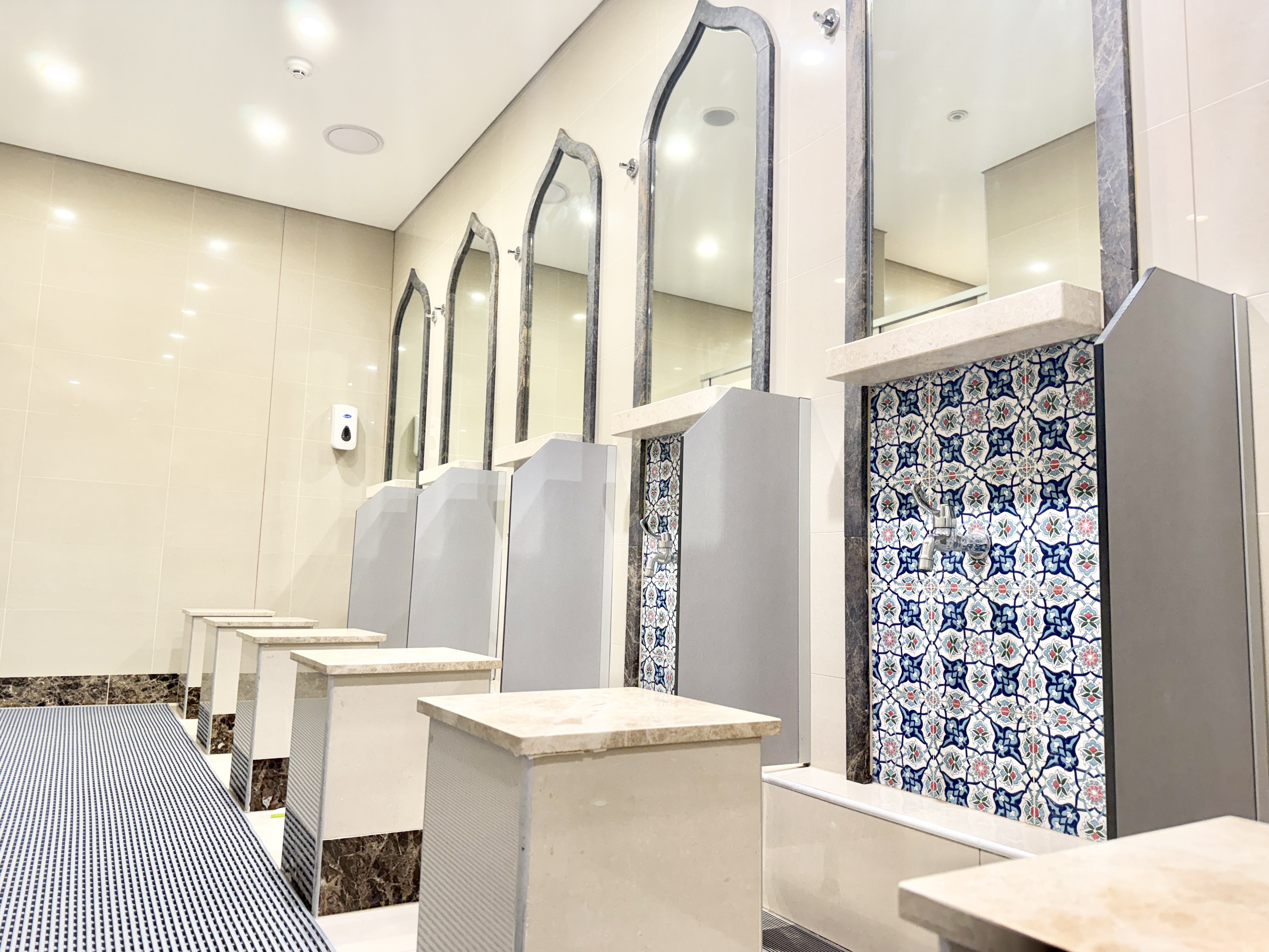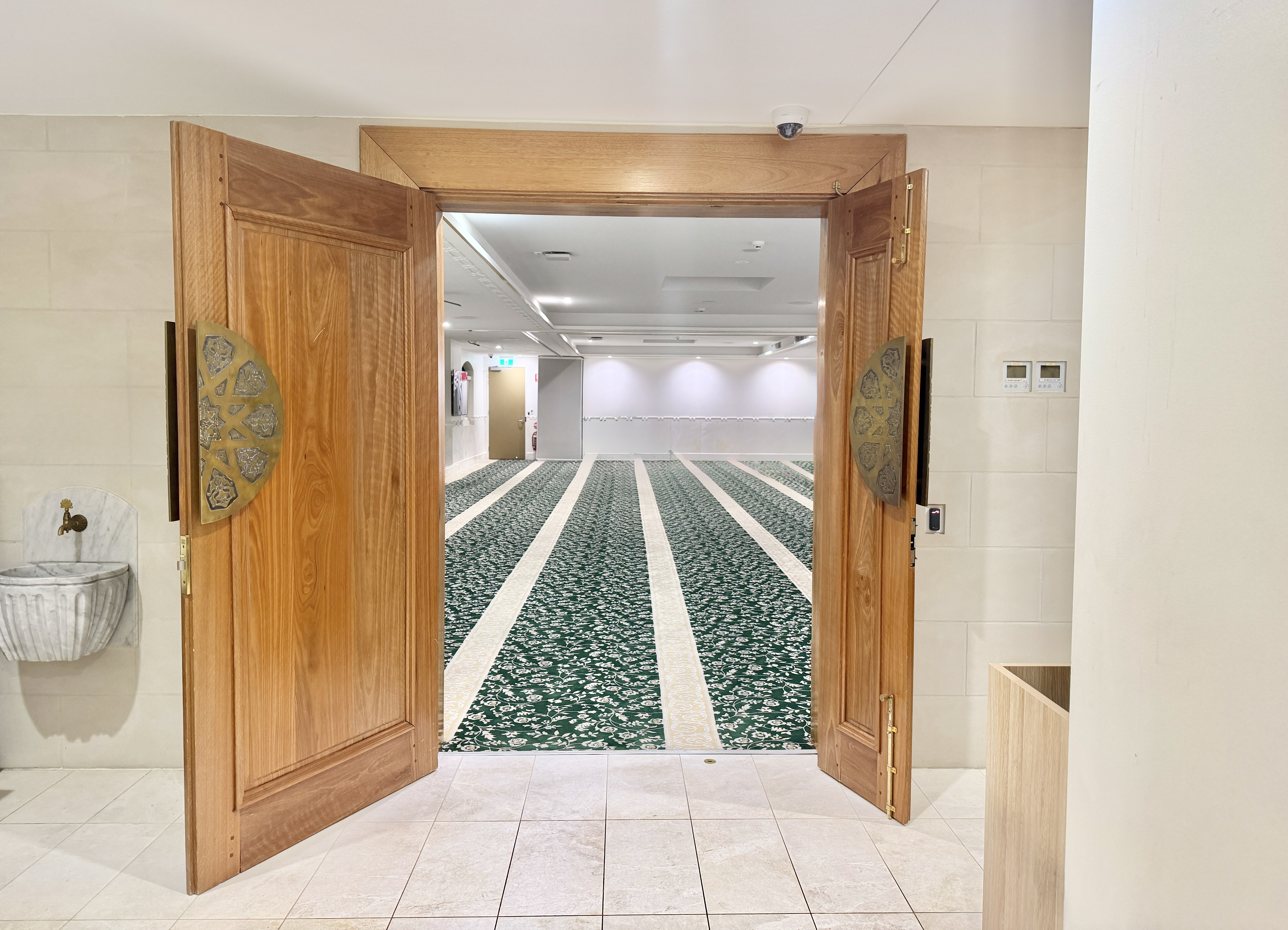 The Women’s Section at Daar Ibn Abbas has been created as a tranquil and welcoming space that honours the comfort and modesty of the women in our community. Designed to offer privacy whilst still maintaining a link to the main congregation, it provides a peaceful environment for reflection, prayer and learning. The women's section includes its own ritual washing area, ensuring ease and convenience, as well as a dedicated entry and lift that allow women to access the space with dignity. Every detail has been considered to create a setting where worshippers can focus on their devotion and feel entirely at ease.